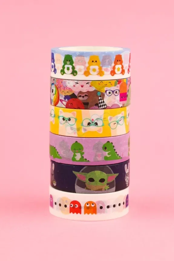 WASHI TAPE DINO van Studio Inktvis is de kleurrijke masking tape om te gebruiken bij je bullet journal, agenda of om een kadootje helemaal te pimpen. Washi tape vrolijkt je bullet journal niet alleen op, maar is ook erg handig. Geef bepaalde items of onderwerpen in je bujo een specifieke tape of maak bijvoorbeeld tabjes aan de betreffende bladzijdes met de juiste tape. Je kunt ook stukjes tape vastmaken aan paperclips en die aan je maand- en weeklog schuiven. Zo kun je ze gemakkelijk door je bujo bladeren.