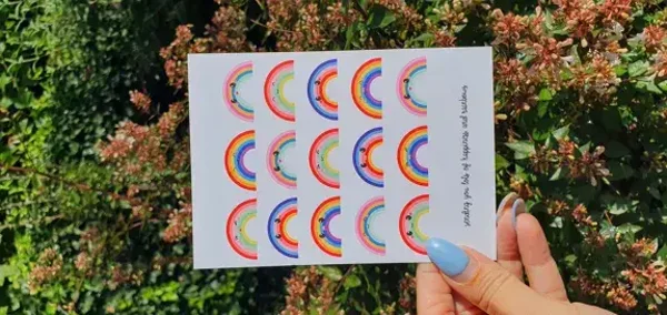 Kaart Sending rainbows is een grappige kaart geschikt voor iedereen die zijn eigen weg durft te kiezen middels een nieuwe baan, een eigen zaak of een verhuizing.