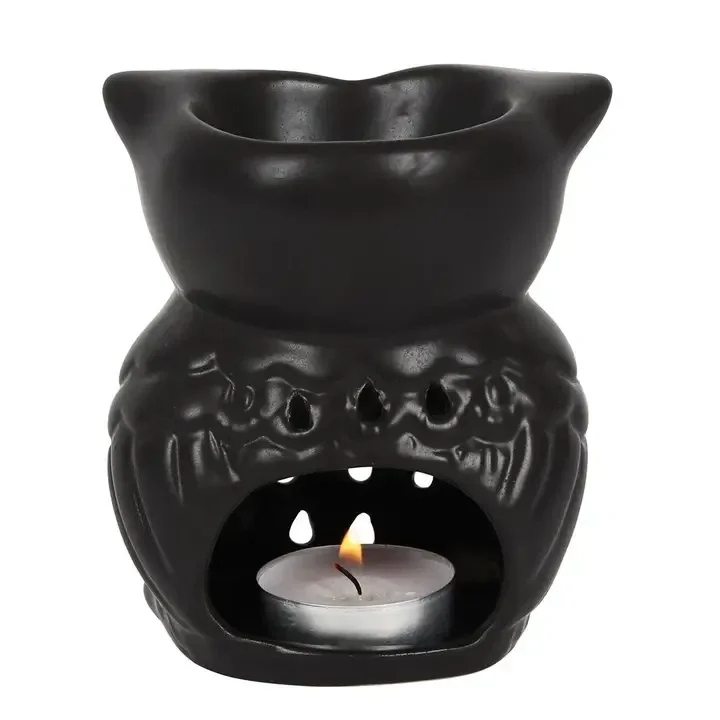 Charmante zwarte uilenbrander die er prachtig uitziet als er een aangestoken theelichtje in wordt geplaatst. Ontworpen door Something Different.