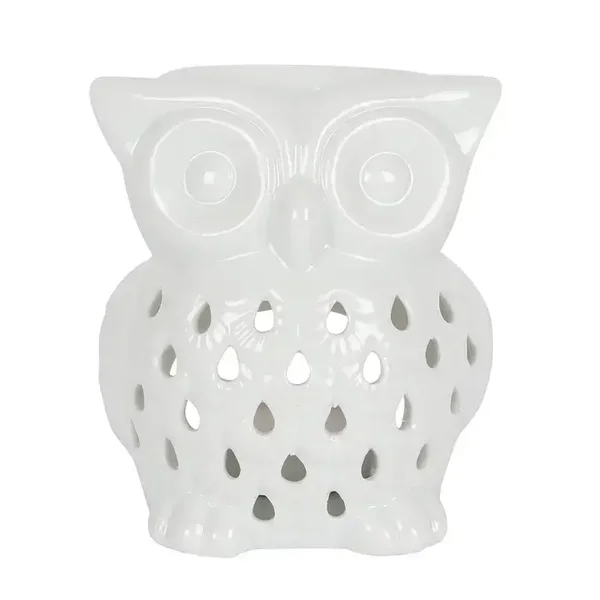 Charmante oliebrander met witte uil die er prachtig uitziet als er een aangestoken theelichtje in wordt geplaatst. Ontworpen door Something Different.