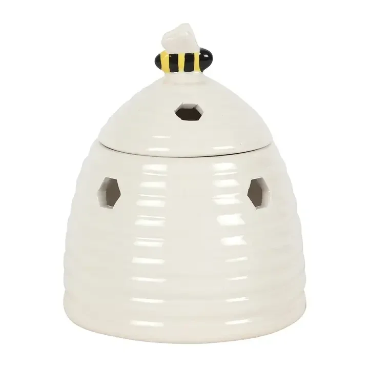 Deze keramische oliebrander heeft de vorm van een schattige witte bijenkorf met een lieve bij op het deksel. Honingraatvormige uitsparingen maken deze unieke stijl compleet. Ontworpen door Something Different.