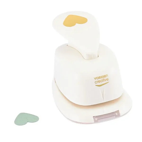 Met deze kleine figuurpons van Vaessen Creative stans* je in één handbeweging een hart uit papier, cardstock, foto’s, kurk, dun foam en meer. Figuurponsen zijn de perfecte sidekicks voor het versieren van kaarten, scrapbookpagina’s, planners, labels en uitnodigingen.