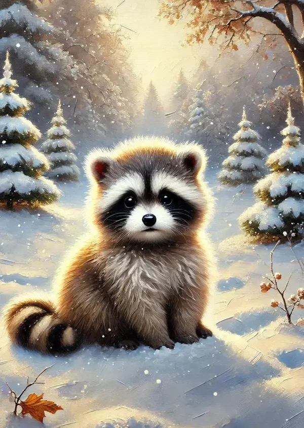 Fripperies Ansichtkaart Animals in snow Wasbeer