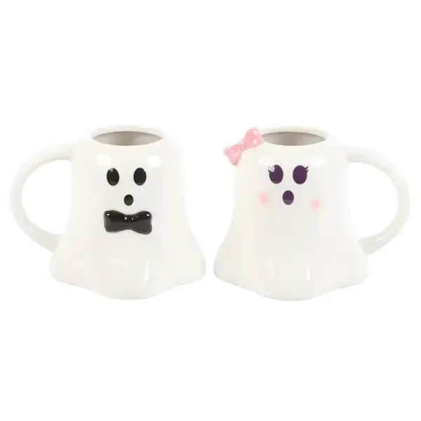Maak kennis met de spookvormige mokken van Mr en Mrs Boo, het perfecte paar voor hem en haar dit Halloween- en herfstseizoen. De ene mok is voorzien van een sierlijke roze strik, terwijl de andere een strakke zwarte vlinderdas heeft, wat een vleugje elegantie en plezier toevoegt aan het ontwerp. Vier het griezelige seizoen in stijl met dit schattige duo. Elke mok heeft een inhoud van 440 ml. Alleen met de hand wassen. Niet in de magnetron gebruiken. Ontworpen door Something Different.